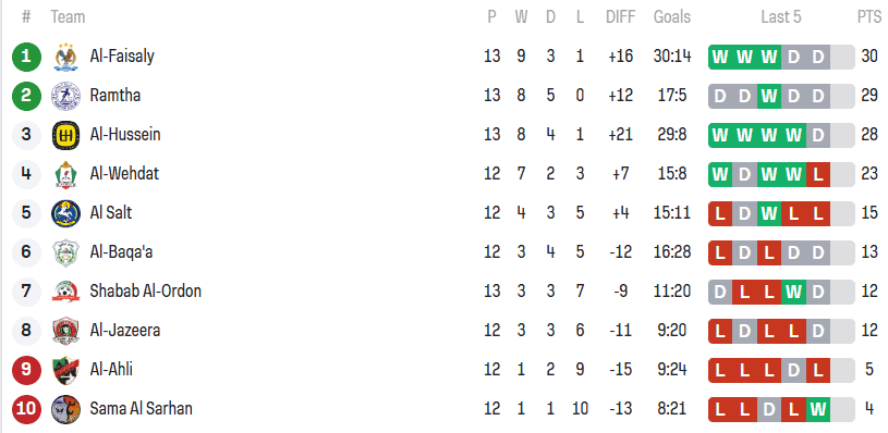 شباب الأردن 1-1 الفيصلي: إحصائيات وأهداف مثيرة
