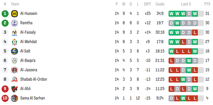 أكملت الجولة 14 من دوري المحترفين الأردني لكرة القدم منافساتها المثيرة التي امتدت من الجمعة الماضي، مقدمة نتائج حاسمة أعادت تشكيل ترتيب الصدارة وشدّدت المنافسة بين الفرق الرائدة. شهدت الجولة انتصارات قوية للحسين والجزيرة والسلط، مع تعادلات دراماتيكية أبقَت الإثارة قائمة حتى اللحظات الأخيرة.