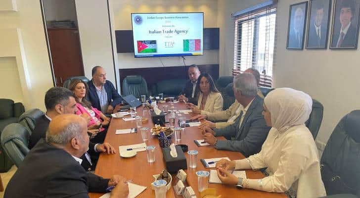 ناقش مجلس إدارة جمعية الأعمال الأردنية الأوروبية “جيبا” وعدد من أعضائها، يوم الأربعاء، خلال لقاء مع البعثة التجارية الإيطالية في عمّان، سُبل تعزيز التعاون التجاري والاستثماري بين الأردن وإيطاليا، مؤكدين أهمية القطاع الخاص في دفع هذه العلاقات إلى آفاق أوسع.