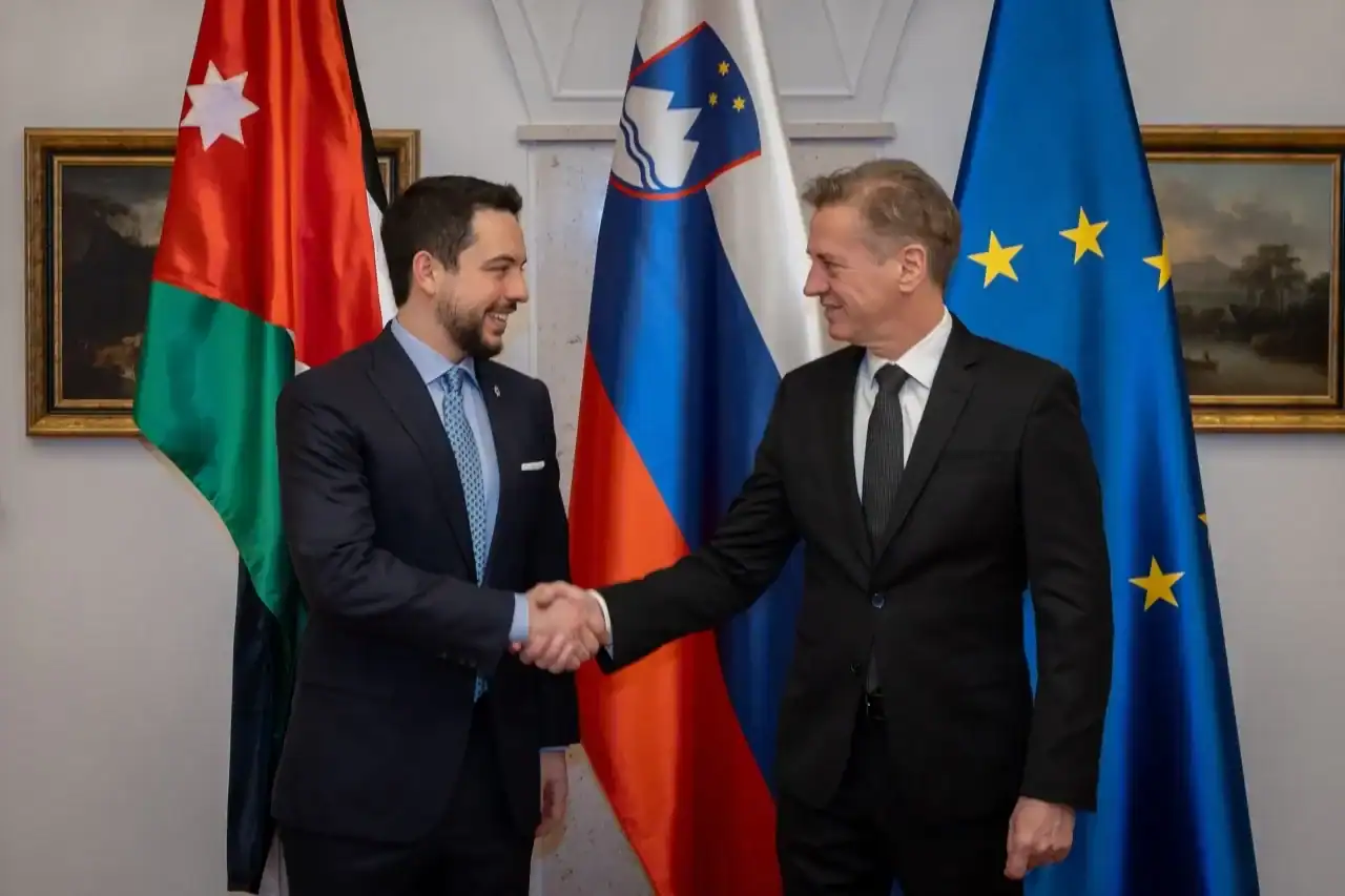 نيابة عن جلالة الملك عبدالله الثاني، عقد سمو الأمير الحسين بن عبدالله الثاني، ولي العهد، لقاءً في العاصمة السلوفينية ليوبليانا يوم الأحد مع رئيس الوزراء السلوفيني الدكتور روبرت غولوب، ركز خلاله على تعزيز العلاقات الثنائية بين البلدين الصديقين.